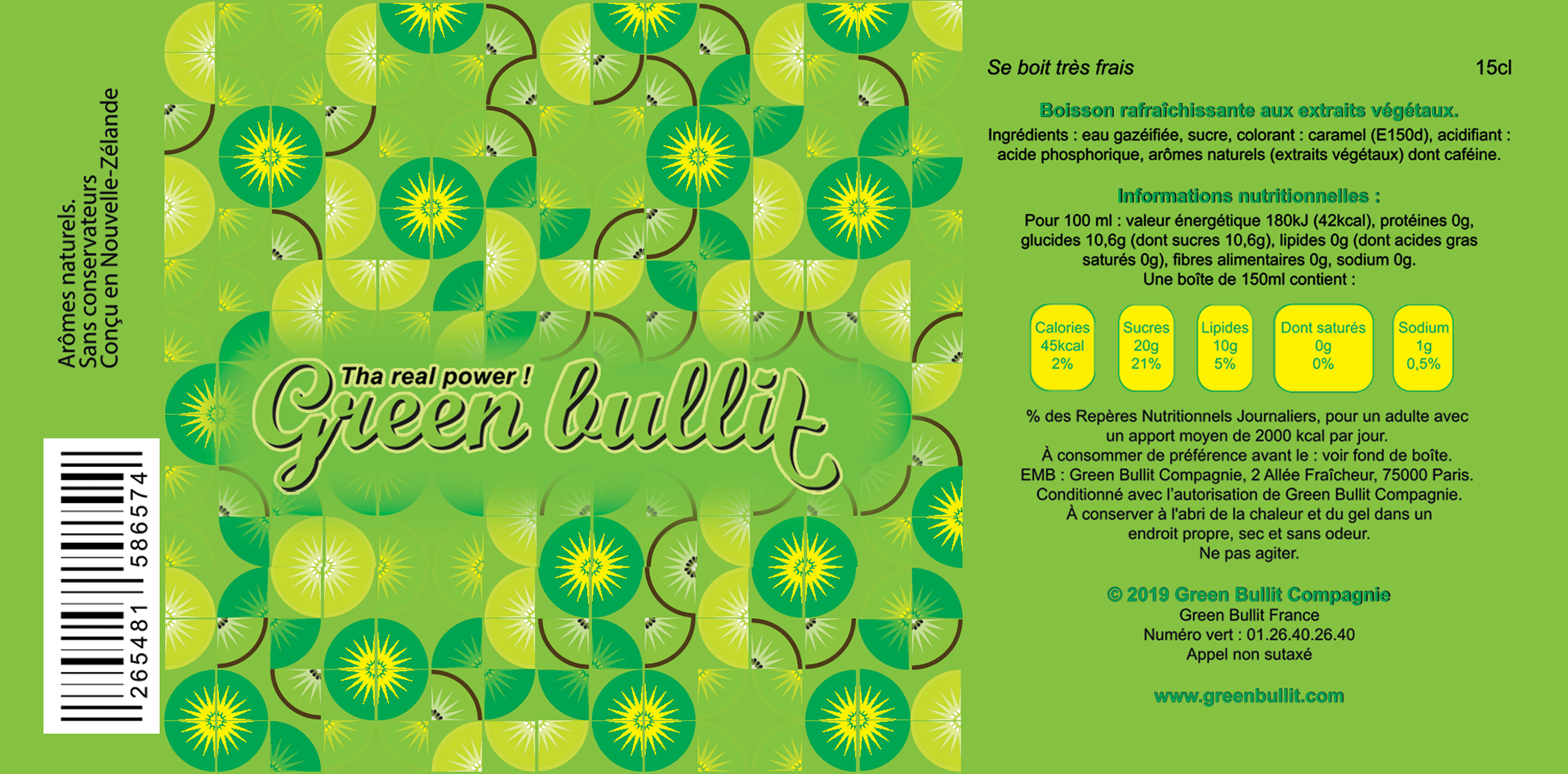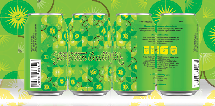 Packaging de canette pour boisson énergétique au kiwi