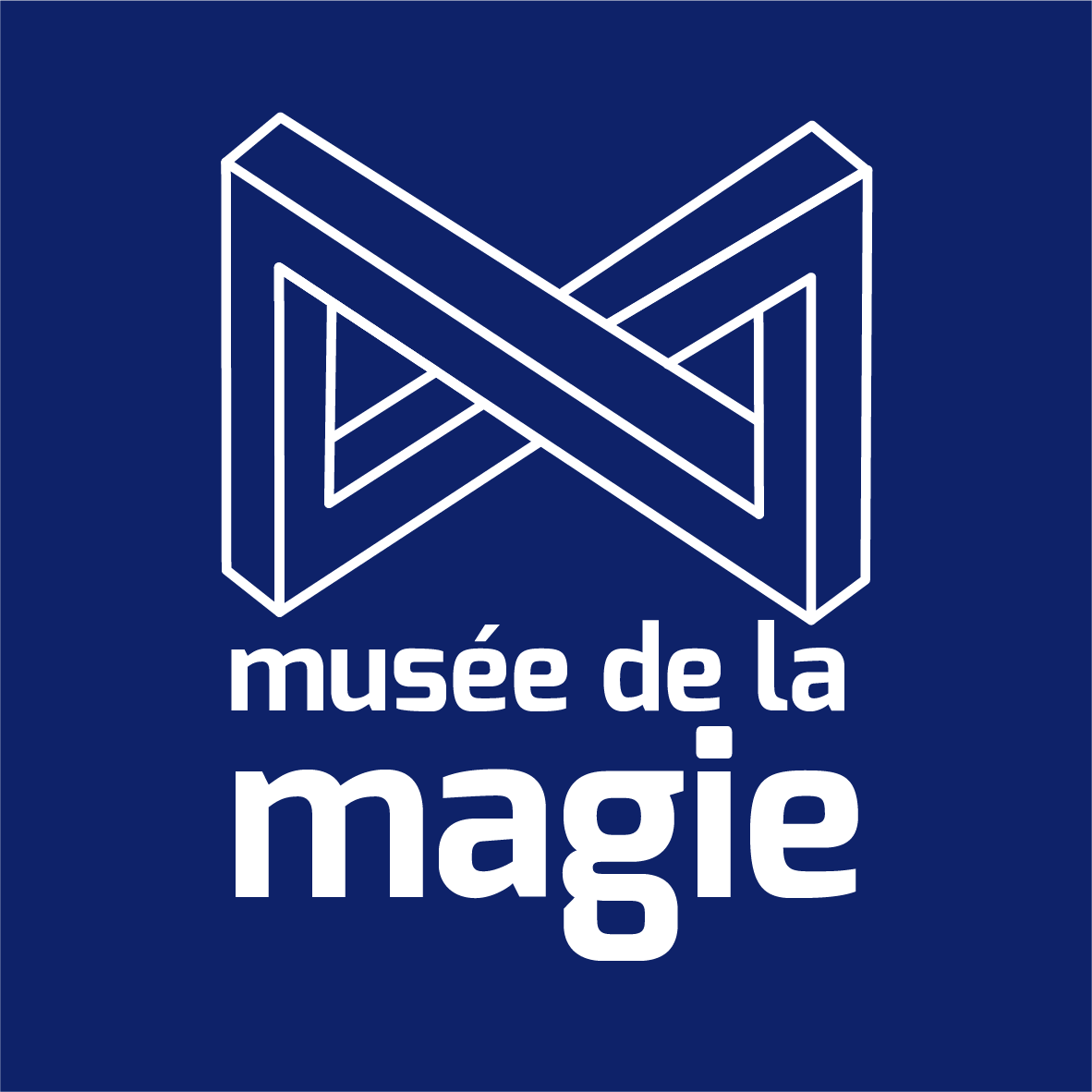 Le logotype repose sur un double M en miroir, dessiné sous une forme impossible inspirée de l’escalier de Penrose. Ce symbole intrigant traduit l’idée d’un monde où l’illusion et la réalité se confondent, où l’impossible devient possible. La couleur bleu nuit (#0e2269) a été choisie pour renforcer cette atmosphère énigmatique et envoûtante. Elle évoque la profondeur du ciel et la liberté de l’imaginaire, invitant le spectateur à explorer de nouveaux horizons.